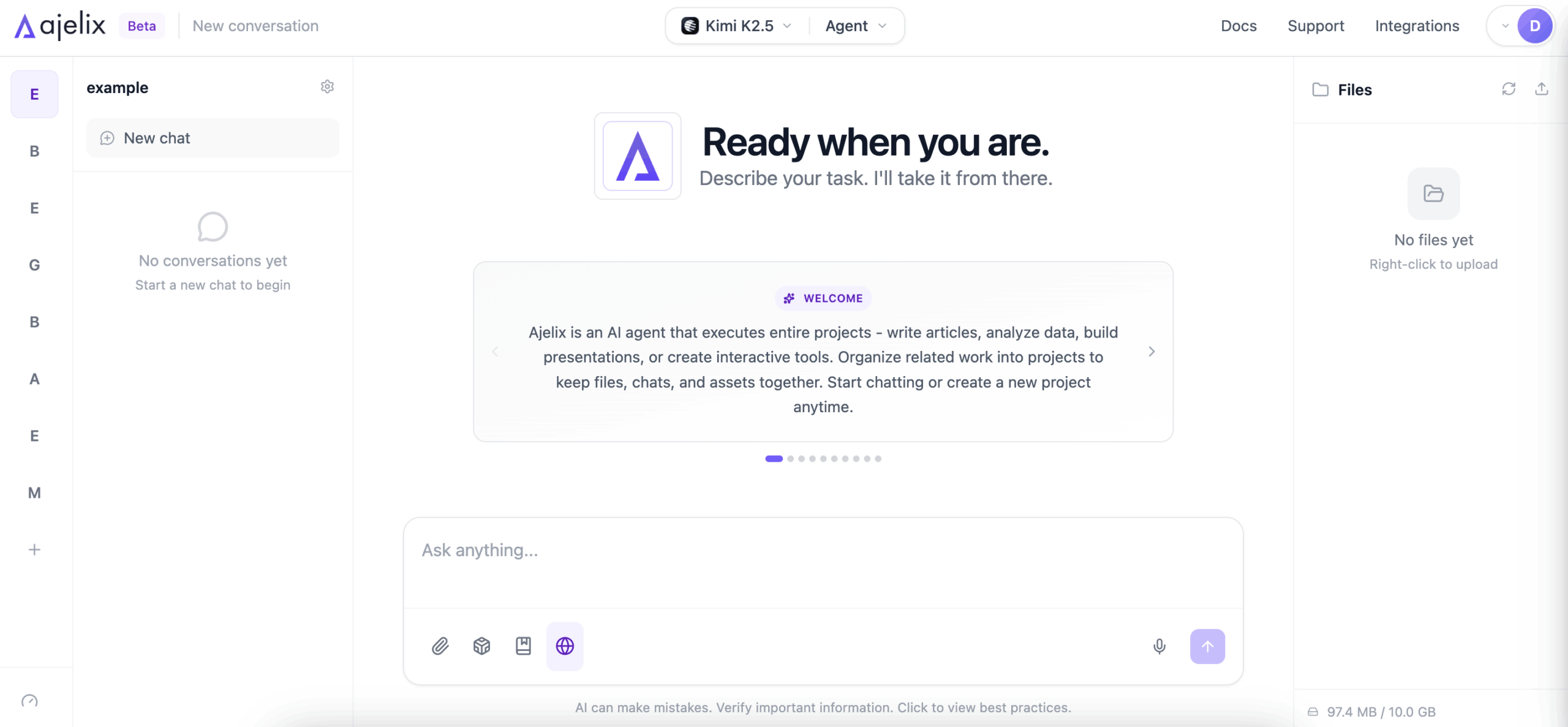 Its main limitation is that it is built for complexity. If you only need a quick one-line answer or a simple lookup, the structured agentic approach can feel like more than the task requires. But Ajelix offers both a Chat and Agent mode – the Chat mode can be used for brainstorming, while the Agent mode is agentic.