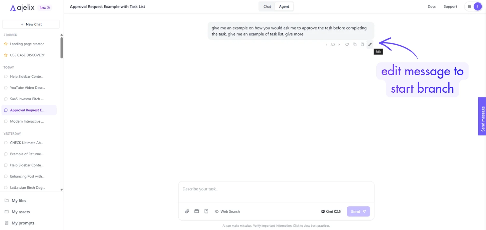 - Submit to start a new conversation path from that point